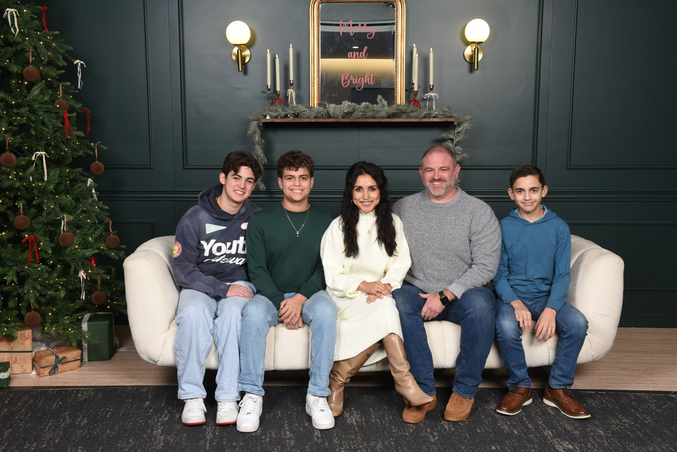 Our family in 2025: Ethan, Caleb, me, Nate, and Eli